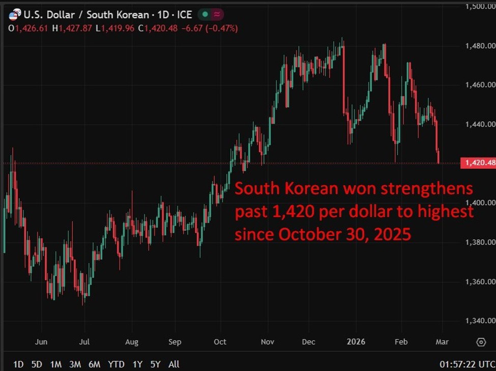 BOK’s new dot plot reinforces a 2.50% hold bias, with only a small minority pricing a cut.Summary:More from the Bank of Korea’s Feb 26 decision: the hold at 2.50% was unanimous.The new six-month “dot plot” shows the board’s centre of gravity is a prolonged hold.16 of 21 dots sit at 2.50%, pointing to a strong bias to keep policy steady.A minority skew slightly dovish: 4 dots at 2.25% imply some scope for one cut.Only 1 dot at 2.75% signals limited appetite for a hike in the next six months.BOK says growth momentum remains favourable, with strong chip exports underpinning activity.Policy stance: support the recovery while closely monitoring inflation and financial stability.Key risks flagged: geopolitics, tariffs, and housing/household debt/FX volatility.On domestic risks: household loans rose only slightly and Seoul housing price gains have slowed.More details from the Bank of Korea’s policy decision earlier confirm a steady-as-she-goes stance — and the new “dot plot” framework leans heavily toward an extended pause.The BOK held its benchmark rate at 2.50% as expected, and it later confirmed the decision was unanimous, underscoring a strong consensus that policy is appropriately set for now. Alongside the decision, the central bank published the first iteration of its expanded forward-guidance scheme, providing a clearer window into policymakers’ near-term rate thinking.The six-month dot plot, based on 21 projections (three per board member), shows the distribution clustered tightly around the current setting. Sixteen of the 21 projections sit at 2.50%, signalling that most policymakers see the base rate unchanged through the next half year. A smaller dovish minority is visible: four projections point to 2.25%, indicating some members see a possible cut scenario if conditions evolve in that direction. By contrast, only one projection sits at 2.75%, suggesting limited conviction behind near-term tightening.On the macro backdrop, the BOK said growth momentum should remain favourable, pointing to strong semiconductor exports as a key support. At the same time, it emphasised it will make policy decisions in a way that supports the economic recovery while closely monitoring changes in domestic and external policy conditions and their knock-on effects for inflation and financial stability.Risk language stayed focused on the usual pressure points. The BOK flagged geopolitical risks and tariffs externally, and reiterated the need for caution on housing prices, household debt and exchange-rate volatility domestically. It added that household loans increased only slightly and that housing price gains around Seoul have slowed, suggesting some moderation — but not enough to declare the financial-stability story resolved.