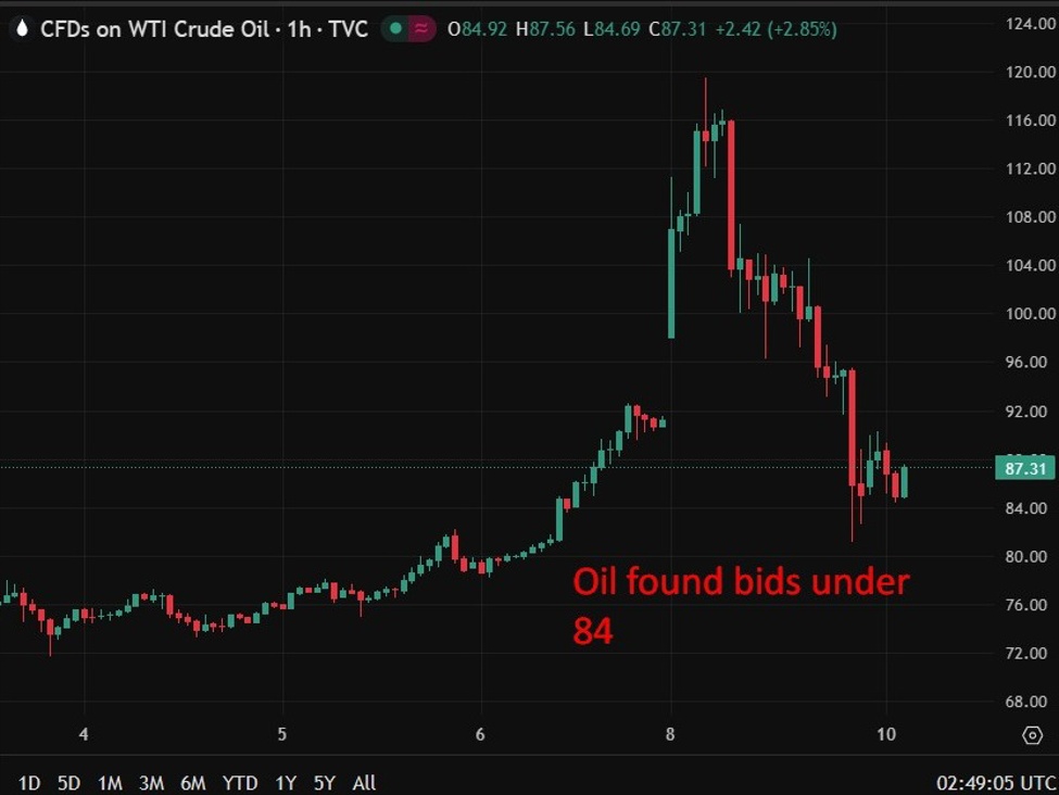 ICYMI: Goldman Sachs & Barclays warn sustained oil surge could push US inflation toward 3%Trump advisers urge Iran war exit plan amid epic oil price surge. Epic Blunder?Recap – Japan upgrades Q4 GDP to 1.3% on strong investment, Iran war clouds outlookPBOC sets USD/ CNY reference rate for today at 6.8982 (vs. estimate at 6.8891)Iran plans shipping levies in Gulf. Trump warns massive retaliation if oil flows disruptedAustralian business confidence turns negative as conditions hold steady (pre war survey)Iran rejects Trump’s claims of progress in war, warns regional oil exports could haltUK consumer spending remains subdued as inflation fears rise and wage growth firmsJapan Q4 GDP final revision improves from a porr preliminary resultJapan January household spending unexpectedly falls 1.0% vs year agoAustralian consumer sentiment rebounds slightly but inflation fears surgeIran war-driven oil surge pushes markets to price in new European rate hikesTrump says Strait of Hormuz does not matter to the USTrump says again Iran war will end soon, but says not this weekIran signals Hormuz safe passage to countries expelling U.S. and Israeli diplomatsTrump spoke with Republicans, still talking toughinvestingLive Americas FX news wrap 9 Mar:M arkets rebound as oil slides on SPR hopesAnnouncement could be soon (ICYMI: US considers easing Russian oil sanctions)At a glance;Oil markets remained extremely volatile after Monday’s historic intraday swing in WTI crude.Donald Trump delivered mixed messages on the Iran war, alternating between suggesting the campaign is largely complete and warning it will continue until victory is secured.Trump also warned Iran would face much heavier bombing if it disrupts oil flows from the region.Iran’s Revolutionary Guards responded defiantly, saying Tehran will determine when the war ends and threatening to halt regional oil exports if attacks continue.Oil prices eased slightly in Asia ahead of G7 energy ministers’ talks on a possible coordinated release of emergency reserves.Japan’s GDP was revised sharply higher for Q4 2025, supported by strong capital expenditure, while FX markets were mostly quiet with the yen firmer and gold higher.Oil markets continued to swing after Monday’s dramatic surge and reversal in crude prices. Front-month WTI recorded the largest intraday trading range on record outside of the extreme volatility seen during the COVID period.The turbulence has been driven primarily by the escalating war involving Iran and uncertainty surrounding its potential impact on energy supplies.Comments from U.S. President Donald Trump added to the confusion. On Monday he suggested the military campaign was already largely accomplished and progressing faster than expected, describing the operation as close to completion. At the same time he stressed the conflict was not yet finished, saying the United States had not achieved enough and that the war would continue until a decisive victory was secured.The messaging was contradictory, with Trump describing the situation as both nearing completion and only the beginning of a broader effort. He also warned that the United States would escalate its military response significantly if Iran attempted to disrupt oil shipments from the region.Iran signalled it intends to resist that pressure. The country’s Islamic Revolutionary Guard Corps responded to Trump’s remarks by stating that Tehran would determine when the conflict ends. It also warned that if U.S. and Israeli attacks continue, Iran would prevent any oil exports from leaving the region.Oil prices have eased somewhat in Tuesday’s Asian session as traders look ahead to discussions among G7 energy ministers later today. The group is expected to consider a coordinated release of strategic petroleum reserves to stabilise markets, with reports suggesting a joint release of roughly 300–400 million barrels could be under discussion.Away from geopolitics, Japan released revised economic data showing stronger-than-expected growth at the end of last year. Fourth-quarter GDP was upgraded sharply to 1.3% annualised from an initial estimate of 0.2%, largely reflecting a surge in business investment. Private consumption was also revised higher, though more recent data showed household spending falling in January.In currency markets, the yen gained modestly while broader moves across major FX pairs remained relatively subdued. The U.S. dollar edged slightly higher overall, while gold prices rallied as investors maintained demand for safe-haven assets amid the geopolitical uncertainty.