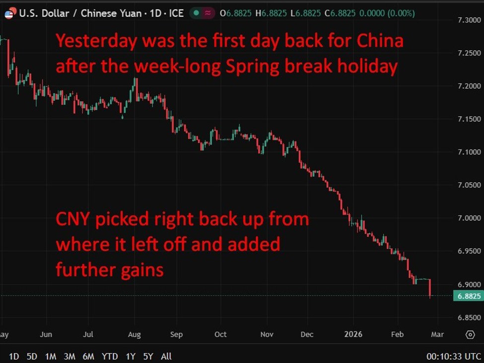 Watch the USD/CNY fixing closely at 0115 GMT; deviations from expectations could lead to significant volatility in Asian forex markets.