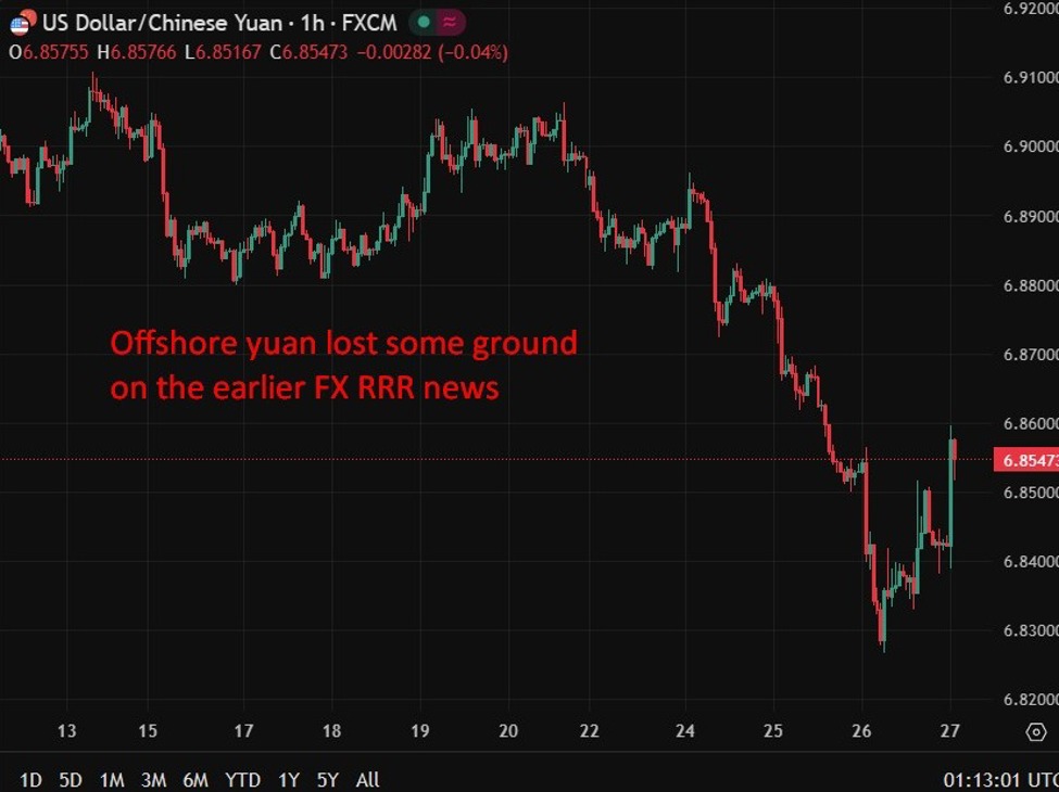 The PBOC’s recent moves are a clear signal that they’re shifting gears on yuan support, and here’s why that matters right now: Injecting 269 billion yuan through reverse repos indicates a liquidity boost, but cutting the FX risk reserve ratio to 0% suggests a more cautious approach to yuan appreciation. This dual strategy could lead to increased volatility in the forex market, particularly for traders focused on USD/CNY pairs. If the yuan weakens beyond the +/- 2% fluctuation range, it could trigger a broader sell-off in emerging market currencies, as investors reassess their risk exposure. Keep an eye on the 7-day reverse repo rate at 1.4%—if it changes, that could signal further PBOC intervention or a shift in monetary policy. On the flip side, some might argue that the PBOC is merely trying to stabilize the yuan amid global economic pressures. However, the potential for a weaker yuan could create hidden opportunities for traders looking to capitalize on short-term fluctuations. Watch for key levels around the current reference rate; a breach could lead to significant market reactions.