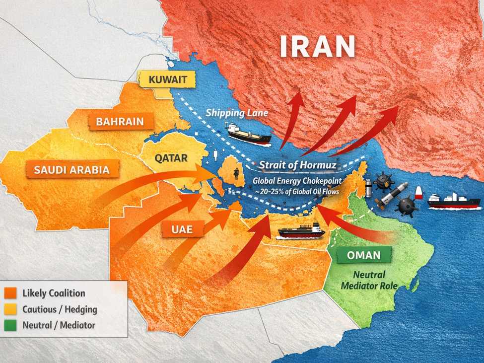 Militarily, a Gulf coalition would not try to “conquer Iran.” Its more realistic mission set would be air and missile defence, maritime escort, mine-clearing, intelligence support, logistics, and possibly limited strikes or island-seizure support near Hormuz.