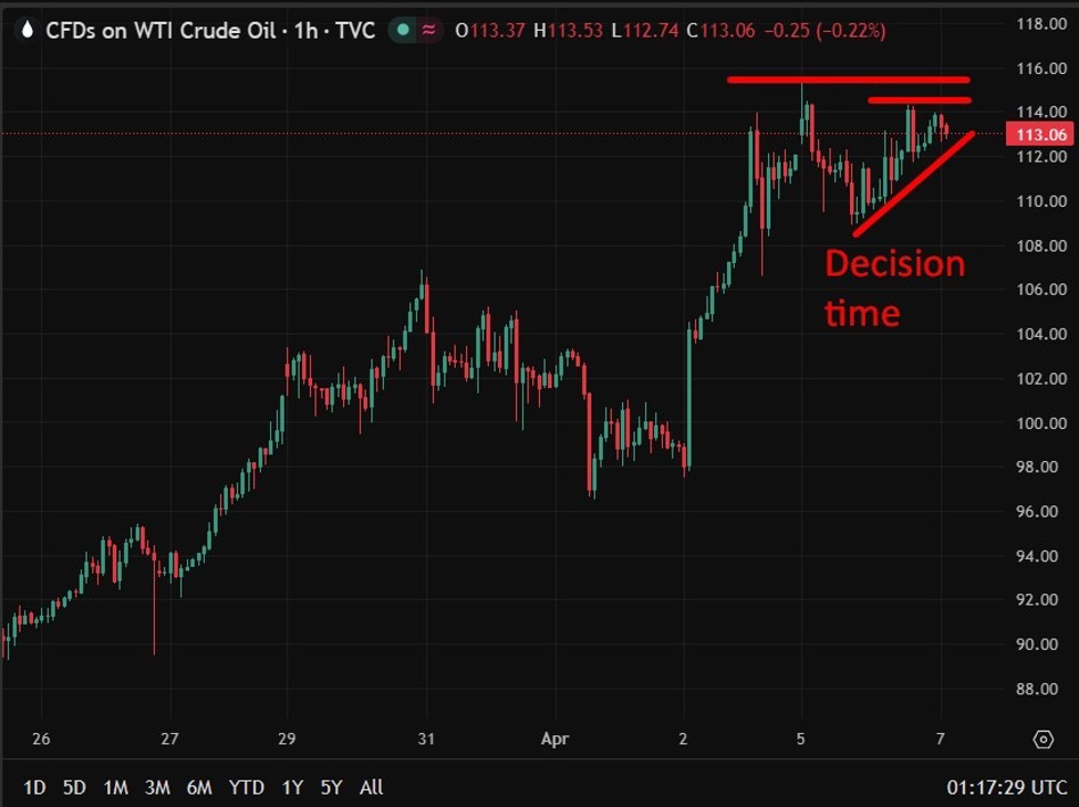 Watch for oil prices; a breakout above recent highs could signal a bullish trend, while any positive news from negotiations might trigger a sell-off.
